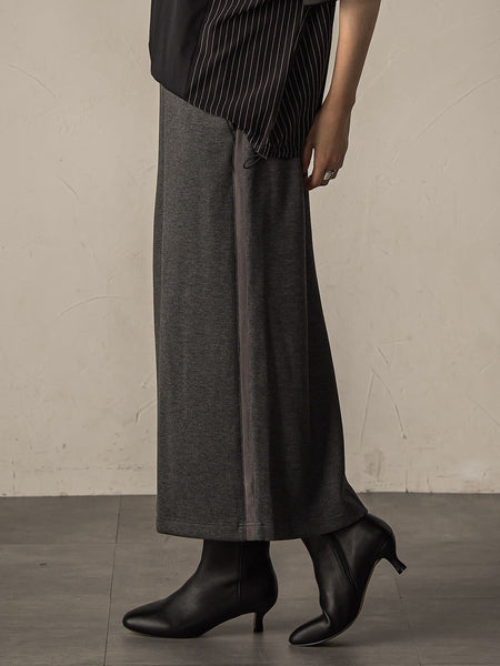 【デザインPOINT】「楽にキレイを叶える、Iライン」すっきり見えするIラインのスカートながら、驚くほどノンストレスな穿き心地。サイドのベロアの縦ラインがメリハリをつくり、スタイルアップ効果も◎ヒップラインをひろいすぎない、ややゆとりを持たせたIラインシルエット。ウエストは前をフラット、後はゴム仕様で、するっと楽に着脱できます。深めのベンツ開きが女っぽい。【スタイリング】Tシャツやスウェットでカジュアルダウンしても大人っぽく、シャツやブラウスで合わせれば通勤にも対応できるきれいめコーデに。【素材の特徴】【RY/Peダンボール】適度なハリコシがあり、シルエットをきれいに保つ、レーヨン/ポリエステルのダンボールジャージーを使用。しなやかさと心地良いストレッチ性が魅力。----------------------------------------------------------------洗濯方法家庭洗濯:液温は40℃を限度とし、手洗いができる。自然乾燥:日陰の吊り干しがよい。アイロン:底面温度120℃を限度としてアイロン仕上げができる。ドライクリーニング:石油系溶剤による弱いドライクリーニングができる。----------------------------------------------------------------■モデル身長 166cm 170cm / 着用サイズ M※画像の商品はサンプルとなりますので実際の商品と仕様、加工、サイズが若干異なる場合がございます。※お客様のモニター環境により実際のお色と多少異なる場合がございます。※撮影状況や光の当たり具合により、色合いが異なって見える場合がございます。関連ワード:MAYSON GREY メイソングレイ レディース 新作 大人コーデ 大人カジュアル 2025秋冬 2025AW 秋冬 秋物 秋服 ポリエステル レーヨン ゴム