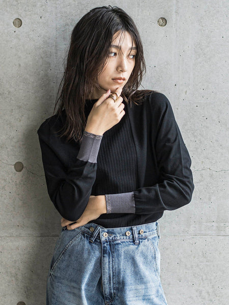 - ボトルネック配色ニットプルオーバー≪手洗い可能≫