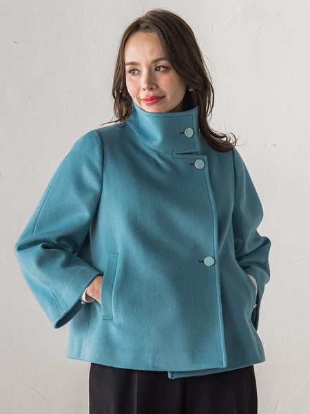 【デザインの特徴】高めのスタンドカラーが印象的でエレガントなデザインです。バックスタイルにはタックを入れてフェミニンに仕上げています。スタンド衿のボタンを開けると大き目のラペルの様にも着て頂けます。ボタンを留めてスタンドカラーとして着用すれば洗練られた雰囲気に。暖かさもありつつ、とてもライトな着用感が魅力的な今年らしい1着。【素材の特徴】紡績、織り、染色整理すべてを国内でおこなっているmade in japanの素材です。スーパー100原料が持つ美しい光沢、ソフトさとハリコシの程良いバランス、ラムウールをブレンドしているので、心地よい風合いと毛並みの美しさが特徴です。----------------------------------------------------------------洗濯方法家庭洗濯:家庭での洗濯禁止。アイロン:底面温度160℃を限度としてアイロン仕上げができる。ドライクリーニング:石油系溶剤による弱いドライクリーニングができる。----------------------------------------------------------------■モデル身長 169cm/着用サイズ M※画像の商品はサンプルとなりますので実際の商品と仕様、加工、サイズが若干異なる場合がございます。※お客様のモニター環境により実際のお色と多少異なる場合がございます。※撮影状況や光の当たり具合により、色合いが異なって見える場合がございます。※商品タグに記載されたサイズはヌードサイズです。実際の商品のサイズは商品情報の実寸をご確認ください。関連ワード:Viaggio Blu ビアッジョブルー レディース 新作 大人カジュアル 大人コーデ レディース キレイめ フェミニン エレガント 華やか 上品 秋 秋服 2025AW AW 2025秋冬