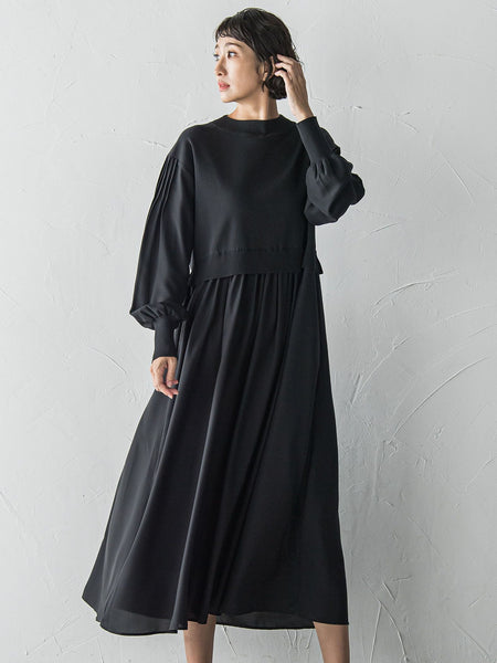 【デザインの特徴】ニットと布帛をドッキングさせた異素材ミックスのワンピース。まるでジレを重ねて着たような奥行きのあるデザインで、一枚でレイヤードスタイルが完成します。袖口にはリブを配し、さっと捲し上げてニュアンスをつけられるのも嬉しいポイント。きちんと感がありながら、デイリーに着やすい着心地を備えた、大人のための万能ワンピースです。----------------------------------------------------------------洗濯方法家庭洗濯:液温は30℃を限度とし、手洗いができる。自然乾燥:日陰の平干しがよい。アイロン:底面温度120℃を限度としてアイロン仕上げができる。ドライクリーニング:石油系溶剤による弱いドライクリーニングができる。----------------------------------------------------------------※画像の商品はサンプルとなりますので実際の商品と仕様、加工、サイズが若干異なる場合がございます。※お客様のモニター環境により実際のお色と多少異なる場合がございます。※撮影状況や光の当たり具合により、色合いが異なって見える場合がございます。※商品タグに記載されたサイズはヌードサイズです。実際の商品のサイズは商品情報の実寸をご確認ください。関連ワード:la.f… ラ エフ レディース 新作 大人コーデ シンプル フォーマル モード マニッシュ 2025秋冬 2025AW 秋冬 秋物 秋服
