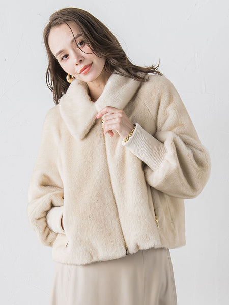 袖口はリブデザインにすることでファーアウタースタイルを華奢な印象で着こなしていただけます。