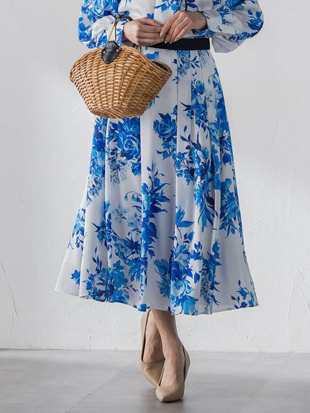 【デザインの特徴】満開の華やかな花々を集めてブーケにした可憐で春らしいプリントスカート。タックフレアーシルエットでたっぷりとした分量感がラグジュアリーな印象です。透け感と光沢感のある軽やかな素材感がエレガントです。ウエストは無地の生地で切り替え、ポイントにしています。単品としても、同素材のブラウスやカーディガンとセットアップで着ていただくと、よりエレガントで華やかな印象です。【素材の特徴】京都の職人の手で描かれた美しいオリジナルプリント。Made in japanの国産生地を使用しています。----------------------------------------------------------------洗濯方法家庭洗濯:液温は30℃を限度とし、手洗いができる。自然乾燥:日陰の吊り干しがよい。アイロン:底面温度160℃を限度としてアイロン仕上げができる。ドライクリーニング:石油系溶剤による弱いドライクリーニングができる。----------------------------------------------------------------■モデル身長 169cm/着用サイズ M※画像の商品はサンプルとなりますので実際の商品と仕様、加工、サイズが若干異なる場合がございます。※お客様のモニター環境により実際のお色と多少異なる場合がございます。※撮影状況や光の当たり具合により、色合いが異なって見える場合がございます。※商品タグに記載されたサイズはヌードサイズです。実際の商品のサイズは商品情報の実寸をご確認ください。関連ワード:Viaggio Blu ビアッジョブルー レディース 新作 大人カジュアル 大人コーデ レディース キレイめ フェミニン エレガント 華やか 上品 春 夏 2026春夏 2026SS 春服 夏服