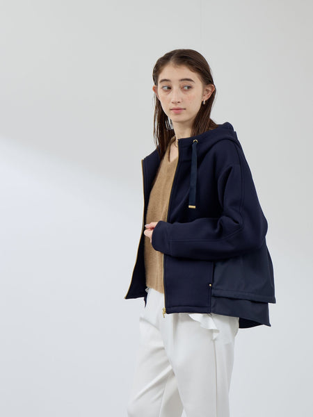 ●POINTダンボールニットの表面に「カルゼ織り」の組織や風合いを持たせた素材を使用しています。ダンボールニット特有の軽やかさに加え、カルゼ織りの特徴である立体的な斜めの畝り(うねり)やハリ感、立体感が特徴です。上品かつスポーティな見た目を両立させた素材と後身頃部分は合繊素材で切り替えた異素材コンビネーションのパーカーは「裏起毛パーカーとウールカルゼブルゾンの中間アイテム」で、秋〜初冬、春にかけての着用がおすすめです。バックデザインは二枚仕立てで、裾のドローコードでシルエット変化が可能です。また、後身頃のサイド切り替え位置が、前身頃に向かって斜めにはいることでウエスト〜腰まわりにかけてすっきりした印象に仕上げます。----------------------------------透け感:なし厚さ: やや厚い伸縮性:あり裏地: なしポケット: あり--------------------------------------------------------------------------------------------------洗濯方法家庭洗濯:家庭での洗濯禁止。アイロン:底面温度120℃を限度としてアイロン仕上げができる。ドライクリーニング:石油系溶剤による弱いドライクリーニングができる。----------------------------------------------------------------■モデル身長 165cm 着用サイズ M※画像の商品はサンプルとなりますので実際の商品と仕様、加工、サイズが若干異なる場合がございます。※お客様のモニター環境により実際のお色と多少異なる場合がございます。※撮影状況や光の当たり具合により、色合いが異なって見える場合がございます。関連ワード:QUEENS COURT クイーンズコート レディース 新作 フェミニン 大人コーデ 2025秋冬 2025AW 秋冬 秋物 秋服 合成繊維/ポリエステル レーヨン ポリウレタン パーカー
