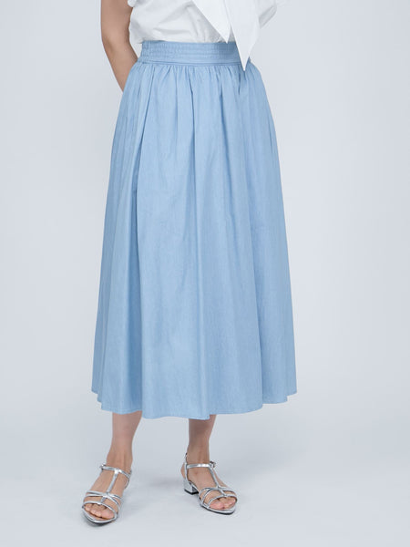 ●POINTクリーンでオーセンティックな印象の程よくライトなダンガリーデニム素材を使用しています。カジュアルで幼い印象にふれやすいダンガリー素材ですが、ウエストフロント部分にステッチをうって凛とした印象を持たせながら、バックウエストはゴム仕様でイージーな履き心地に。トップスはタックインでご着用いただき、シルエットコントロールしていただくのがおすすめです。ライトジャケットやパンプスなどをあわせて、夏のデニムルックとは一線を画す大人のデニムスタイルが完成します。----------------------------------透け感:なし厚さ: 普通伸縮性:なし裏地: なしポケット: あり--------------------------------------------------------------------------------------------------洗濯方法家庭洗濯:液温は40℃を限度とし、手洗いができる。自然乾燥:日陰の吊り干しがよい。アイロン:底面温度160℃を限度としてアイロン仕上げができる。ドライクリーニング:石油系溶剤による弱いドライクリーニングができる。----------------------------------------------------------------■モデル身長 165cm 着用サイズ M※画像の商品はサンプルとなりますので実際の商品と仕様、加工、サイズが若干異なる場合がございます。※お客様のモニター環境により実際のお色と多少異なる場合がございます。※撮影状況や光の当たり具合により、色合いが異なって見える場合がございます。関連ワード:QUEENS COURT クイーンズコート レディース 新作 フェミニン 大人コーデ 通勤 2025秋冬 2025AW 秋 秋服 コットン デニム 無地 ゴム フレアスカート ギャザースカート