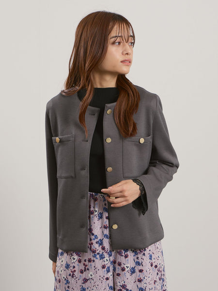 ●POINTカルゼ織りの斜めの畝とダンボールニットのふくらみが組み合わさり、ウールジャケットのような表情を醸す、上品で高級感のあるノーカラージャケットです。見た目の分量感に反して、コンパクトなフォルムですが、軽くてストレッチ性があり動きやすいのも特徴です。前立てとポケットにメタルボタンを使用し、よりクリーンな印象に仕立てています。コンパクトなフォルムなので、ワイドパンツやフレアスカートなどのボリュームのあるボトムスとコーディネートしていただいてもバランスよくお召しいただけます。----------------------------------透け感:なし厚さ: やや厚い伸縮性:あり裏地: なしポケット: あり--------------------------------------------------------------------------------------------------洗濯方法家庭洗濯:液温は40℃を限度とし、手洗いができる。自然乾燥:日陰の吊り干しがよい。アイロン:底面温度120℃を限度としてアイロン仕上げができる。ドライクリーニング:石油系溶剤による弱いドライクリーニングができる。----------------------------------------------------------------■モデル身長 165cm 着用サイズ M※画像の商品はサンプルとなりますので実際の商品と仕様、加工、サイズが若干異なる場合がございます。※お客様のモニター環境により実際のお色と多少異なる場合がございます。※撮影状況や光の当たり具合により、色合いが異なって見える場合がございます。関連ワード:QUEENS COURT クイーンズコート レディース 新作 フェミニン 大人コーデ 2025秋冬 2025AW 秋冬 秋物 秋服 合成繊維/ポリエステル レーヨン ポリウレタン