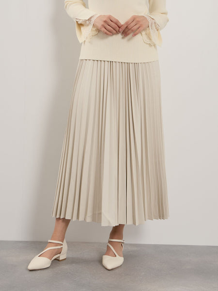 ●POINTリアルに近い質感やタッチにこだわった、非常に柔らかく、肌触りが良いシープレザーのような合皮素材を使用しています。滑らかで軽やかな素材なので、分量感のでるプリーツ加工を施しても重さが気になりにくいのが魅力です。ウエストはぐるりゴム使用でストレスの感じにくい着用感に。気温に左右されにくいので、気温が高い日にはTシャツ合わせで、秋めいた気温感の日にはジャケットなどを合わせていただいて、季節感をいち早く感じられる一枚です。同素材を使用したアイテムに、シープナッパ調ステンカラージャケット(2205-56066)がございます。----------------------------------透け感:なし厚さ: やや厚い伸縮性:あり裏地: なしポケット: なし--------------------------------------------------------------------------------------------------洗濯方法家庭洗濯:家庭での洗濯禁止。アイロン:アイロン仕上げ禁止。ドライクリーニング:石油系溶剤による弱いドライクリーニングができる。----------------------------------------------------------------■モデル身長 165cm 着用サイズ M※画像の商品はサンプルとなりますので実際の商品と仕様、加工、サイズが若干異なる場合がございます。※お客様のモニター環境により実際のお色と多少異なる場合がございます。※撮影状況や光の当たり具合により、色合いが異なって見える場合がございます。関連ワード:QUEENS COURT クイーンズコート レディース 新作 フェミニン 大人コーデ 2025秋冬 2025AW 秋冬 秋物 秋服 合成皮革 無地 ゴム プリーツスカート