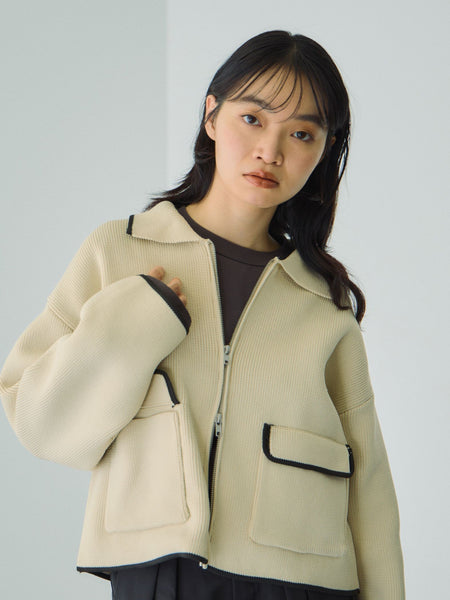 ●POINTスポンディッシュな弾力感のある編地の配色ラインが印象的なニットブルゾン。パーカー感覚でイージーにご着用いただけるアイテムです。見た目の肉感に反して軽量で、ボクシーなフォルムでワイドパンツやカーブパンツ、フレアスカートなど分量感のあるボトムスと着合わせていただいてもバランスよくご着用いただけます。また、ボトムスとの着合わせのバランスで、ウエストまわりが重くなったりするときには、裾スリットのようにジップを開けて、抜け感を演出するなどの着こなしにも嬉しいダブルジップデザインです。----------------------------------透け感:なし厚さ: やや厚い伸縮性:あり裏地: なしポケット: あり--------------------------------------------------------------------------------------------------洗濯方法家庭洗濯:液温は30℃を限度とし、手洗いができる。自然乾燥:日蔭の平干しがよい。アイロン:底面温度120℃を限度としてアイロン仕上げができる。ドライクリーニング:石油系溶剤による弱いドライクリーニングができる。----------------------------------------------------------------■モデル身長 165cm 着用サイズ M※画像の商品はサンプルとなりますので実際の商品と仕様、加工、サイズが若干異なる場合がございます。※お客様のモニター環境により実際のお色と多少異なる場合がございます。※撮影状況や光の当たり具合により、色合いが異なって見える場合がございます。関連ワード:VICKY ビッキー レディース 新作 大人カジュアル 大人コーデ 2025秋冬 2025AW 秋冬 秋物 秋服 合成繊維/ポリエステル ニット
