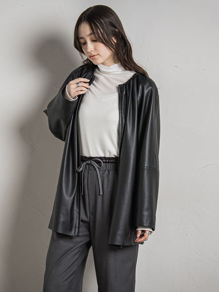 【デザインPOINT】大注目のレザーアイテムを、丸みのあるフォルムで女性らしく柔らかなムードで仕上げたブルゾン。表情のある襟元のギャザーがポイント。ラフに羽織れてお洒落にきまる、オーバーシルエット。カーヴィな袖はラグラン設定で動きやすく、インナーを着こめてロングシーズン活躍します。【スタイリング】細身からワイドシルエットのパンツ、ナローやプリーツスカート、幅広いスタイリングにマッチ。【素材の特徴】【ソフトフェイクレザー】ソフトでしなやかな風合いが魅力のフェイクレザーを使用。艶をおさえた品のある質感を厳選しました。----------------------------------洗濯方法家庭洗濯:家庭での洗濯禁止アイロン:底面温度110℃を限度としてアイロン仕上げができる。ドライクリーニング:石油系溶剤による弱いドライクリーニングができる。----------------------------------■モデル身長 166cm 170cm / 着用サイズ M※画像の商品はサンプルとなりますので実際の商品と仕様、加工、サイズが若干異なる場合がございます。※お客様のモニター環境により実際のお色と多少異なる場合がございます。※撮影状況や光の当たり具合により、色合いが異なって見える場合がございます。関連ワード:MAYSON GREY socolla メイソングレイ ソコラ 大人カジュアル 2024秋冬 2024AW 冬 冬服 キレカジ 合成繊維/ポリエステル 合成皮革