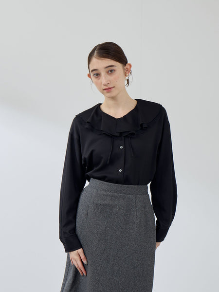●POINTさらりとした肌触りで軽い着心地ときちんとしたハリ・コシが共存する、上品で高見えするウールトロピカルのような質感の合繊素材を使用しています。セーラーニュアンスの大きめのフレアカラーは透け感のあるシフォン素材とのレイヤーダブルカラーで大人エッセンスを加えて一層視線を集めるデザインに。ナローコードがついており、リボン結びにしたり、リボンタイのように垂らしたり、着こなしにあわせてアレンジ可能です。ジレ、ジャケットやカーディガンなどとのレイヤードスタイルもカラーデザインが映えるスタイリングに。同素材を使用したアイテムにナチュレッチセンタープレスワイドパンツ(2210-57007)がございます。----------------------------------透け感:なし厚さ: 普通伸縮性:あり裏地: なしポケット: なし--------------------------------------------------------------------------------------------------洗濯方法家庭洗濯:液温は40℃を限度とし、手洗いができる。自然乾燥:日陰の吊り干しがよい。アイロン:底面温度160℃を限度としてアイロン仕上げができる。ドライクリーニング:石油系溶剤による弱いドライクリーニングができる。----------------------------------------------------------------■モデル身長 165cm 着用サイズ M※画像の商品はサンプルとなりますので実際の商品と仕様、加工、サイズが若干異なる場合がございます。※お客様のモニター環境により実際のお色と多少異なる場合がございます。※撮影状況や光の当たり具合により、色合いが異なって見える場合がございます。関連ワード:QUEENS COURT クイーンズコート レディース 新作 フェミニン 大人コーデ 2025秋冬 2025AW 秋冬 秋物 秋服 ブラウス ポリエステル 無地 長袖