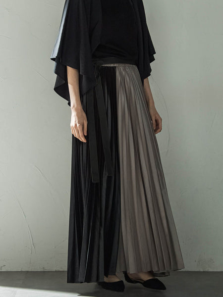 - 【カタログ掲載】ポリエステルレザーバイカラープリーツスカート