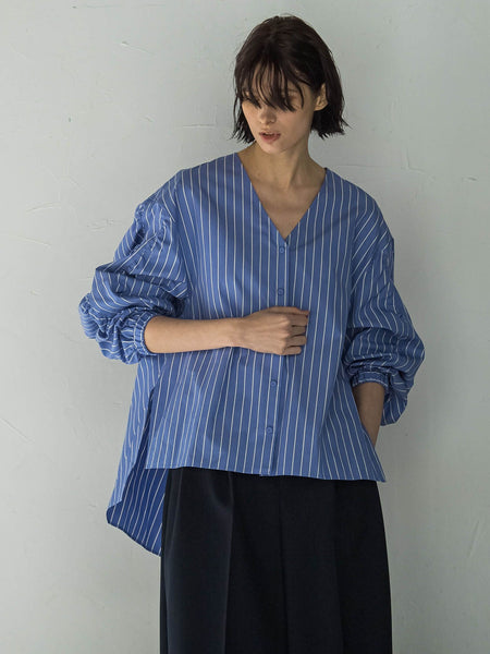 - ポリエステルストレッチ撥水加工スリーブギャザーブラウス