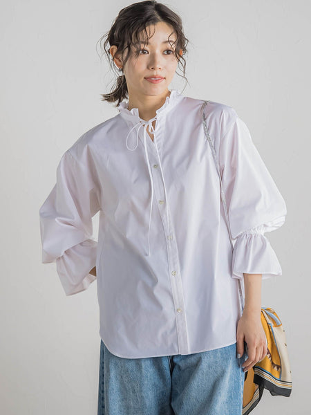【デザインポイント・着こなしポイント】ドロワットで人気の2wayフリルブラウスがブラッシュアップして登場!フリルデザインに華奢なリボンが華やかなスタンドカラーブラウス。襟元のフリル×スラッシュネックで抜け感のあるフェミニン要素をプラスし旬な着こなしを叶えてくれます。ほんの少し抜き襟でリボンはラフに垂らして着るのがおすすめ。前後2WAYで着用いただけるのでリボンを後ろ側にしてニットやジャンスカにレイヤードするスタイルにも着回せます。袖のデザインがキャンディスリーブになってリニューアルし、ニットなどと袖口のレイヤードも楽しめます。無地は綿ポリエステル、ストライプは綿ナイロンの素材を使用し、シワになりにくく着映えする程良いハリ感が魅力です。----------------------------------洗濯方法家庭洗濯:液温は30℃を限度とし、洗濯機で非常に弱い洗濯ができる。自然乾燥:日蔭の吊り干しがよい。アイロン:底面温度110℃を限度としてアイロン仕上げができる。ドライクリーニング:石油系溶剤による弱いドライクリーニングができる。----------------------------------※画像の商品はサンプルとなりますので実際の商品と仕様、加工、サイズが若干異なる場合がございます。※お客様のモニター環境により実際のお色と多少異なる場合がございます。※撮影状況や光の当たり具合により、色合いが異なって見える場合がございます。※商品タグに記載されたサイズはヌードサイズです。実際の商品のサイズは商品情報の実寸をご確認ください。関連ワード:Droitelautreamont ドロワットロートレアモン AW 2024秋冬 冬 冬服 WINTER 大人カジュアル ブラウス コットン ポリエステル ナイロン 長袖 キャンディスリーブ フリル スラッシュネック 気温15度~20度におすすめ