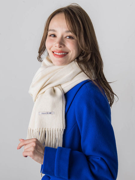 ふんわりと空気を含んだような軽さと、思わず触れたくなる上質な肌ざわりが魅力のマフラー。大人の女性に似合う、やわらかく品のあるカラーです。首元に巻くだけで顔まわりを明るく見せてくれ、コートスタイルに優しい華やぎをプラス。端のさりげないフリンジが、動くたびに軽やかな表情を添えてくれます。冬のおでかけや通勤にも活躍する、シンプルで長く愛せる一本です。
