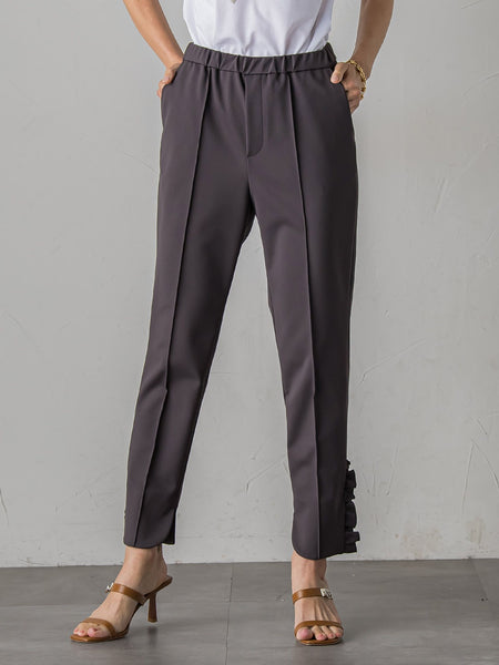 【デザインの特徴】フリルデザインがアクセントの美シルエットのストレッチテーパードパンツ。ナイロンとポリウレタンを使用したハイストレッチ素材は重厚感がありスタイリングを上品な印象に。程よい肉感のハイストレッチ素材は体のラインを拾いにくく安心感のある着用感。イージーケアも魅力的です。裾にに施したラウンドスリットが足首を華奢な印象に見せてくれます。心地よい履き心地ながらも品のある装いへ導く大人のイージーパンツです。----------------------------------------------------------------洗濯方法家庭洗濯:液温は40℃を限度とし、洗濯機で弱い洗濯ができる。自然乾燥:吊り干しがよい。アイロン:底面温度120℃を限度としてアイロン仕上げができる。ドライクリーニング:石油系溶剤による弱いドライクリーニングができる。----------------------------------------------------------------■モデル身長 169cm/着用サイズ M※画像の商品はサンプルとなりますので実際の商品と仕様、加工、サイズが若干異なる場合がございます。※お客様のモニター環境により実際のお色と多少異なる場合がございます。※撮影状況や光の当たり具合により、色合いが異なって見える場合がございます。※商品タグに記載されたサイズはヌードサイズです。実際の商品のサイズは商品情報の実寸をご確認ください。関連ワード:Viaggio Blu ビアッジョブルー レディース 新作 大人カジュアル 大人コーデ レディース キレイめ フェミニン エレガント 華やか 上品 秋 秋服 2025AW AW 2025秋冬