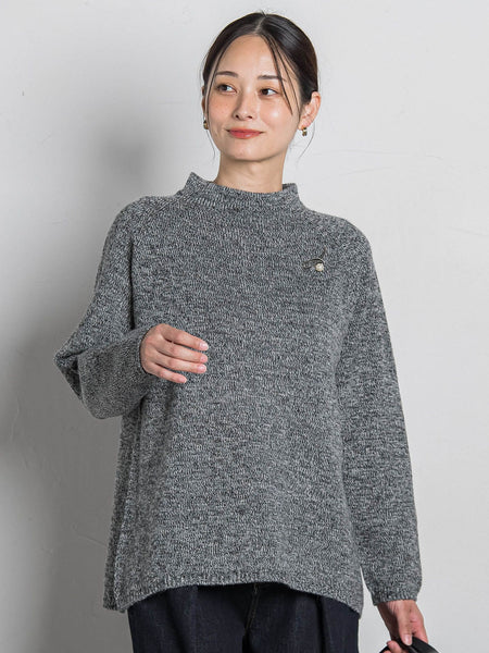【デザイン】縫い目のないホールガーメント製法で仕立てた、上品でミニマルなニットプルオーバー。シンプルながらも、ふっくらと立体的なフォルムが美しく、着るだけでやわらかな印象に見せてくれます。程よくゆとりをもたせたシルエットと、首に沿うモックネックがバランス良く、パンツにもスカートにも合わせやすいデザイン。ラグランスリーブで肩まわりのラインが自然に落ち、リラックス感のある着心地です。【素材】アクリルをベースに、ウールとアンゴラをブレンドしたあたたかみのある糸を使用。ふんわりとした膨らみと柔らかい肌触りが魅力で、軽さと保温性を両立しています。毛羽立ちを抑えた上品な風合いで、カジュアルにもきれいめにもマッチする万能ニットです。