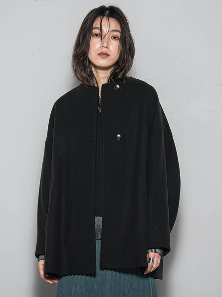 【デザインPOINT】「肩のチカラを抜いた、きれいめコート。」立体的なカーブ袖と、深めの前重なりが、ほんのりモードなデザインのノーカラーコート。オーバーシルエットでも柔らかな素材が身体に馴染み、着膨れ知らずの一枚。ゆるっとしたフォルムが洒落感のある、ドロップショルダーのパターン。厚手やドルマントップスにも楽に羽織れます。フロントは水牛調釦でポイントになるよう、仕上げました。【スタイリング】きれいめからカジュアルまで、幅広いシーンに活躍。パンツ、スカート、ワンピースまで、万能にに羽織れます。【素材の特徴】【ライトジャージメルトン】まるでウールのような風合いでありながら、軽さと伸縮性が魅力のジャージメルトン素材を使用。繊維を圧縮させることにより、柔らかく滑らかなタッチで保温性に優れたコート地です。----------------------------------------------------------------洗濯方法家庭洗濯:家庭での洗濯禁止。アイロン:アイロン仕上げ禁止。ドライクリーニング:石油系溶剤による弱いドライクリーニングができる。----------------------------------------------------------------■モデル身長 166cm 170cm / 着用サイズ M※画像の商品はサンプルとなりますので実際の商品と仕様、加工、サイズが若干異なる場合がございます。※お客様のモニター環境により実際のお色と多少異なる場合がございます。※撮影状況や光の当たり具合により、色合いが異なって見える場合がございます。関連ワード:MAYSON GREY メイソングレイ レディース 新作 大人コーデ 大人カジュアル 2025秋冬 2025AW 秋冬 冬物 冬服 ノーカラー ミドル丈 合成繊維/ポリエステル ウール アクリル
