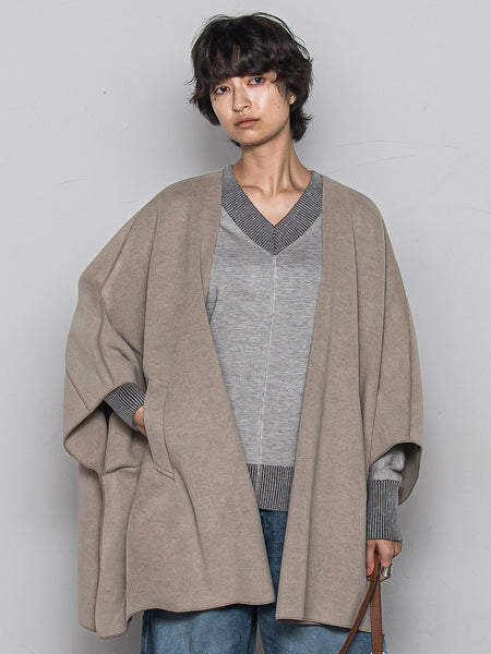 【デザインPOINT】「洒落る、ニュアンスシルエット。」さっと羽織るだけで簡単に洒落る、ポンチョコート。今シーズンは、着流しデザイン、ニュアンスシルエットで登場。たっぷり、ドレーピーな分量がポイントの一着。の特徴自然と波打ち、ニュアンスのあるシルエットが自慢のパターン。重く見えないように、アウトシーム 始末や手首がのぞくバランス、脇スリットで仕上げました。【スタイリング】きれいめにもカジュアルにも、活躍します。インナーやボトムを同系色でまとめると、ワンランク上の着こなしに。【素材の特徴】【ニット両面パイル】両面パイル仕上げで、ふっくらとした質感が魅力のジャージー素材を使用。今シーズンらしいブラウンと、品の良いミルクティーベージュでご用意。----------------------------------------------------------------洗濯方法家庭洗濯:家庭での洗濯禁止。アイロン:アイロン仕上げ禁止。ドライクリーニング:石油系溶剤による弱いドライクリーニングができる。----------------------------------------------------------------■モデル身長 166cm 170cm / 着用サイズ M※画像の商品はサンプルとなりますので実際の商品と仕様、加工、サイズが若干異なる場合がございます。※お客様のモニター環境により実際のお色と多少異なる場合がございます。※撮影状況や光の当たり具合により、色合いが異なって見える場合がございます。関連ワード:MAYSON GREY メイソングレイ レディース 新作 大人コーデ 大人カジュアル 2025秋冬 2025AW 秋冬 秋物 秋服 合成繊維/ポリエステル レーヨン