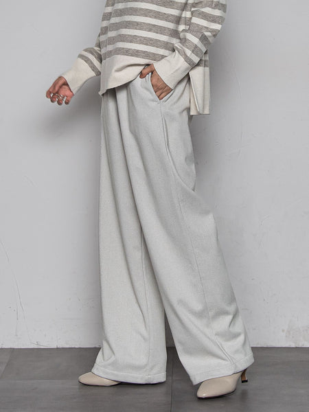 【デザインPOINT】「イージーに穿ける、ぬくもり。」きれいめにも、カジュアルにもはまる、圧縮ジャージー素材のワイドパンツ。今シーズンは、クラシカルなヘリンボーン、旬のスタイリングに欠かせないブラウン、オフをご用意。太すぎず、バランスがとりやすい、ワイドシルエット。ウエストは総ゴム+見せてもお洒落なコード、ファスナー開き無しのパターン。楽な穿き心地が魅力。【スタイリング】同シリーズのシャツとセットアップ対応。ゆるっとしたニットやカーディガンで、上半身にボリュームを持たせると今っぽいバランスに。【素材の特徴】【圧縮ジャージー】膨らみとほどよい厚みのある、ウールライクな圧縮ジャージーを使用。ウォーム感と、着心地の良さを兼ね備えた素材。----------------------------------------------------------------洗濯方法家庭洗濯:液温は40℃を限度とし、手洗いができる。自然乾燥:日陰の吊り干しがよい。アイロン:底面温度120℃を限度としてアイロン仕上げができる。ドライクリーニング:石油系溶剤による弱いドライクリーニングができる。----------------------------------------------------------------■モデル身長 166cm 170cm / 着用サイズ M※画像の商品はサンプルとなりますので実際の商品と仕様、加工、サイズが若干異なる場合がございます。※お客様のモニター環境により実際のお色と多少異なる場合がございます。※撮影状況や光の当たり具合により、色合いが異なって見える場合がございます。関連ワード:MAYSON GREY メイソングレイ レディース 新作 大人コーデ 大人カジュアル 2025秋冬 2025AW 秋冬 冬物 冬服 イージーパンツ ワイドルーズ ポリエステル 紐 ゴム