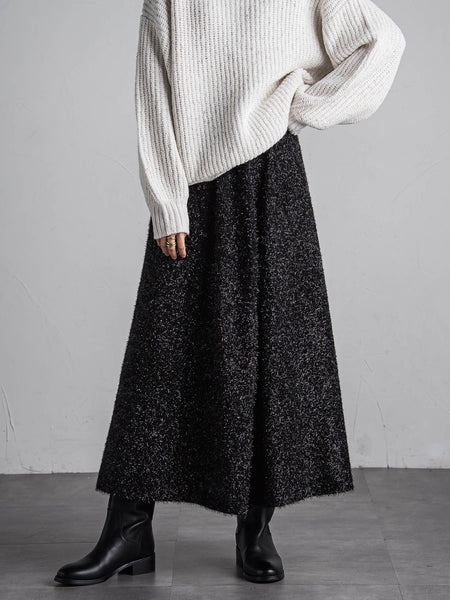 動くたびにキラキラと煌めくラメシャギーニットのフレアスカート。