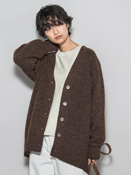【デザインPOINT】「柔らかさに、包まれて。」ふんわりソフトな質感に惹きつけられる、Vネック・ニットカーディガン。ラフに羽織れるサイズ感と、大きめの黒蝶貝釦がポイント。肩のラインを落としたオーバーサイズ設定。リラクシーながらも、すっきり縦長のVネックラインと、前後差のあるカーヴィな裾ラインで、バランスが取りやすいパターン。【スタイリング】パンツにもスカートにも、合わせやすいミドル丈。ゆとりあるシルエットだから、インナーはドルマンでもコンパクトトップスでも◎【素材の特徴】【5G フラッフィーニット 両畦】ふわっとした起毛感がシーズンムードを高める、ポリエステルベースのニット糸を使用。両畦編みで、ふんわり柔らかに仕上げました。----------------------------------------------------------------洗濯方法家庭洗濯:液温は30℃を限度とし、手洗いができる。自然乾燥:日陰の平干しがよい。アイロン:アイロン仕上げ禁止。ドライクリーニング:石油系溶剤による弱いドライクリーニングができる。----------------------------------------------------------------■モデル身長 166cm 170cm / 着用サイズ M※画像の商品はサンプルとなりますので実際の商品と仕様、加工、サイズが若干異なる場合がございます。※お客様のモニター環境により実際のお色と多少異なる場合がございます。※撮影状況や光の当たり具合により、色合いが異なって見える場合がございます。関連ワード:MAYSON GREY メイソングレイ レディース 新作 大人コーデ 大人カジュアル 2025秋冬 2025AW 冬 冬物 冬服 カーディガン ニット ポリエステル アクリル ウール ナイロン Vネック 長袖