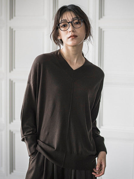 【デザインPOINT】「この空気感が、心地良い。」”肌が喜ぶ”軽やかな心地良さと、ニュアンスを宿すフォルムが魅力のVネックプルオーバー。太めのリブネックが顔周りにメリハリをつけ、アウトシームや飾りステッチ、さりげないデザインをきかせた一枚。たっぷりとしたゆとりのあるシルエットながらも、落ち感とリブ切替えですっきりと見えが叶います。袖を上向きに付けることで、ニュアンスのあるフォルムに。アウターが着やすい可動域を広げたパターン。【スタイリング】合わせ次第で、きれいめにもカジュアルにもきまります。パンツからスカートまでマッチする、万能アイテム。【素材の特徴】【14G シルクカシミヤ 天竺】しっとりなめらかな肌触りが特徴の、シルクカシミヤ・ブレンド糸を使用。薄手でありながらぬくもりがあり、チクチクしにくい上質な風合いに仕上げました。----------------------------------------------------------------洗濯方法家庭洗濯:液温は30℃を限度とし、手洗いができる。自然乾燥:日陰の平干しがよい。アイロン:底面温度120℃を限度としてアイロン仕上げができる。ドライクリーニング:石油系溶剤による弱いドライクリーニングができる。----------------------------------------------------------------■モデル身長 166cm 170cm / 着用サイズ M※画像の商品はサンプルとなりますので実際の商品と仕様、加工、サイズが若干異なる場合がございます。※お客様のモニター環境により実際のお色と多少異なる場合がございます。※撮影状況や光の当たり具合により、色合いが異なって見える場合がございます。関連ワード:MAYSON GREY メイソングレイ レディース 新作 大人コーデ 大人カジュアル 2025秋冬 2025AW 秋冬 秋物 秋服 ニット ポリエステル アクリル ナイロン シルク カシミヤ Vネック 長袖