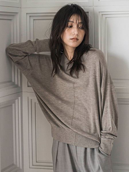 【デザインPOINT】「この空気感が、心地良い。」”肌が喜ぶ”軽やかな心地良さと、ニュアンスを宿すフォルムが魅力のVネックプルオーバー。太めのリブネックが顔周りにメリハリをつけ、アウトシームや飾りステッチ、さりげないデザインをきかせた一枚。たっぷりとしたゆとりのあるシルエットながらも、落ち感とリブ切替えですっきりと見えが叶います。袖を上向きに付けることで、ニュアンスのあるフォルムに。アウターが着やすい可動域を広げたパターン。【スタイリング】合わせ次第で、きれいめにもカジュアルにもきまります。パンツからスカートまでマッチする、万能アイテム。【素材の特徴】【14G シルクカシミヤ 天竺】しっとりなめらかな肌触りが特徴の、シルクカシミヤ・ブレンド糸を使用。薄手でありながらぬくもりがあり、チクチクしにくい上質な風合いに仕上げました。----------------------------------------------------------------洗濯方法家庭洗濯:液温は30℃を限度とし、手洗いができる。自然乾燥:日陰の平干しがよい。アイロン:底面温度120℃を限度としてアイロン仕上げができる。ドライクリーニング:石油系溶剤による弱いドライクリーニングができる。----------------------------------------------------------------■モデル身長 166cm 170cm / 着用サイズ M※画像の商品はサンプルとなりますので実際の商品と仕様、加工、サイズが若干異なる場合がございます。※お客様のモニター環境により実際のお色と多少異なる場合がございます。※撮影状況や光の当たり具合により、色合いが異なって見える場合がございます。関連ワード:MAYSON GREY メイソングレイ レディース 新作 大人コーデ 大人カジュアル 2025秋冬 2025AW 秋冬 秋物 秋服 ニット ポリエステル アクリル ナイロン シルク カシミヤ Vネック 長袖