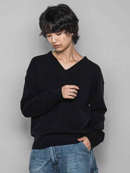 デコルテをすっきり魅せる、Vネックのニットプルオーバー。