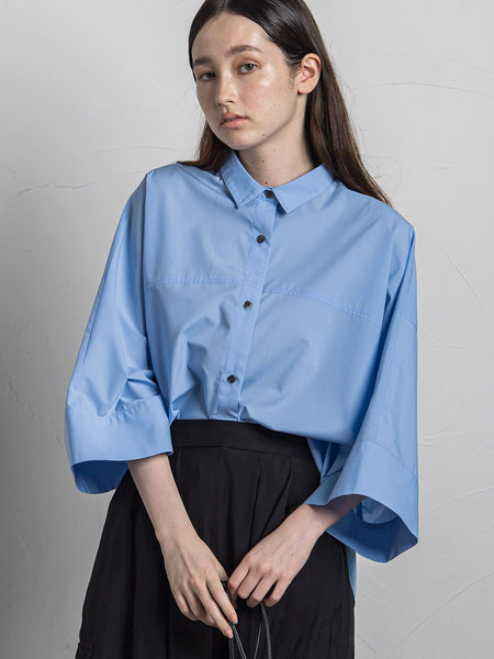 【デザインPOINT】ワイドスリーブが印象的なフォルムを描く、ドルマンシャツ。リラックスムードがありながらも、小さめのシャツ襟やカフスでハンサムに仕上げたデザインが魅力。ゆったりとしたリラックス感のある、ドルマン・シルエット。シャツ襟は、抜いてもかっこ良いバランス。胸上切替えや後袖切替えで、メリハリを付けた拘りのパターン。【スタイリング】ワイドパンツ、パラシュートパンツ、ボリューム系ボトム合わせは前裾IN、細身パンツやRIBスカートにはOUTバランスが◎【素材の特徴】【Limbless 50S ブロード】『願いよ、届け。』着心地の良さと手入れのしやすさを求める現代に「軽快さ」と「しなやかさ」を感じて頂きたいと言う願いを込めて開発されたポリエステル/レーヨンブロード地、リンブレスを使用。----------------------------------洗濯方法家庭洗濯:液温は30℃を限度とし、洗濯機で非常に弱い洗濯ができる。自然乾燥:日蔭の吊り干しがよい。アイロン:底面温度150℃を限度としてアイロン仕上げができる。ドライクリーニング:石油系溶剤による弱いドライクリーニングができる。----------------------------------■モデル身長 166cm 170cm / 着用サイズ M※画像の商品はサンプルとなりますので実際の商品と仕様、加工、サイズが若干異なる場合がございます。※お客様のモニター環境により実際のお色と多少異なる場合がございます。※撮影状況や光の当たり具合により、色合いが異なって見える場合がございます。関連ワード:MAYSON GREY socolla メイソングレイ ソコラ 大人カジュアル 夏服 夏 2024春夏 【20度以上におすすめ】 シャツ ポリエステル レーヨン キレカジ 半袖