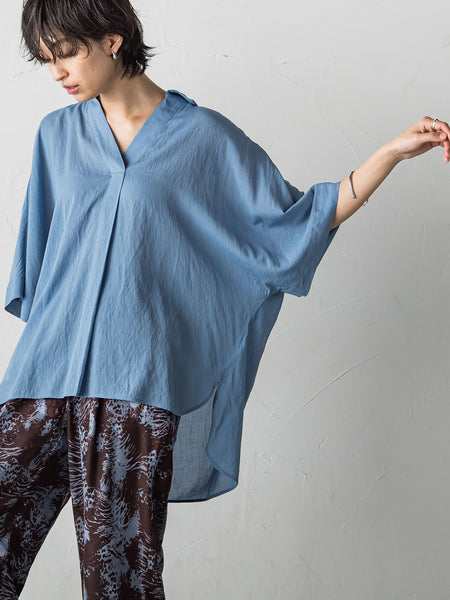 リラックスムード漂う、ドルマンシルエットのスキッパーシャツ。