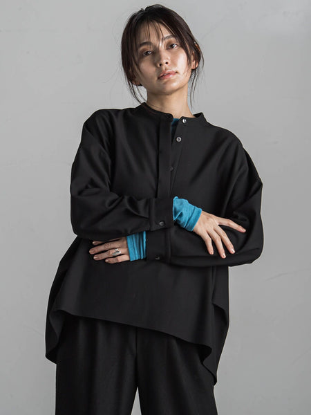 【デザインPOINT】ゆるっとこなれた印象の、スキッパーシャツに新色が追加。後にタックを入れて、丸みのあるフォルムに仕上げました。前を開けた時の本貝釦も着こなしのポイントに。身体が泳ぐオーバーシルエットながらも、比翼釦のバンドカラーとシャツカフスが品の良さを感じられるパターン。後のフォルムと前上がりのカーヴィなヘムラインが柔らかな印象。【スタイリング】同素材のパンツとセットアップ対応。細身パンツからワイドパンツ、プリーツスカートまで幅広くマッチ。【素材の特徴】身に纏った瞬間から心地良い、なめらかな裏起毛を施した2wayストレッチ生地。肌触りが良く、温もりを感じます。----------------------------------洗濯方法家庭洗濯:液温は30℃を限度とし、洗濯機で非常に弱い洗濯ができる。自然乾燥:日蔭の吊り干しがよい。アイロン:底面温度110℃を限度としてアイロン仕上げができる。ドライクリーニング:石油系溶剤による弱いドライクリーニングができる。----------------------------------■モデル身長 166cm 170cm / 着用サイズ M※画像の商品はサンプルとなりますので実際の商品と仕様、加工、サイズが若干異なる場合がございます。※お客様のモニター環境により実際のお色と多少異なる場合がございます。※撮影状況や光の当たり具合により、色合いが異なって見える場合がございます。関連ワード:MAYSON GREY socolla メイソングレイ ソコラ 大人カジュアル 2024秋冬 2024AW 冬 冬服 シャツ ポリエステル