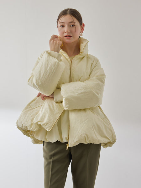 ダウン80%、フェザー20%のふんわりと丸みを帯びた優しいコクーンシルエットのダウンジャケットです。