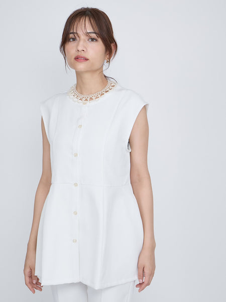 ノーカラーペプラムブラウスジレ≪セットアップ対応/手洗い可能≫