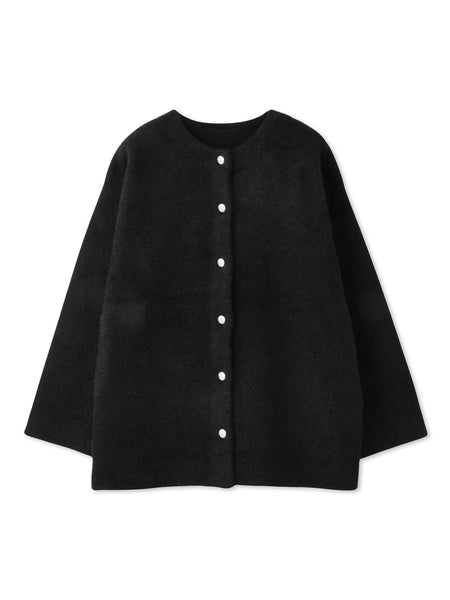 ●POINT昨年大変好評を頂いた肌触りの良いふわふわシャギーニット素材。小ぶりなメタルボタンが上品な印象のニットジャケットです。肉感があるので、ロングタームで気軽に羽織れて便利な一着です。ボクシーなフォルムとミドル丈で気になる腰周りをカバーしながら、リラックス感のある着心地に。裏面にスポンディッシュなストレッチ糸を編みこんでいるため、しっかりとした肉感と形状安定性があり、チクチク感も感じにくく、レイヤードスタイルでも繊維が付着するストレスを軽減するのも嬉しい一枚です。前を締めてプルオーバーとしてもご着用が可能で、コーディネートするハイネックインナーやボウタイリボンブラウスなどを合わせて首元を変えるだけで異なった印象に導きます。----------------------------------透け感:なし厚さ: やや厚い伸縮性:あり裏地: なしポケット: あり--------------------------------------------------------------------------------------------------洗濯方法家庭洗濯:液温は40℃を限度とし、手洗いができる。自然乾燥:日陰の平干しがよい。アイロン:底面温度120℃を限度としてアイロン仕上げができる。ドライクリーニング:石油系溶剤による弱いドライクリーニングができる。----------------------------------------------------------------■モデル身長 165cm 着用サイズ M※画像の商品はサンプルとなりますので実際の商品と仕様、加工、サイズが若干異なる場合がございます。※お客様のモニター環境により実際のお色と多少異なる場合がございます。※撮影状況や光の当たり具合により、色合いが異なって見える場合がございます。関連ワード:QUEENS COURT クイーンズコート レディース 新作 フェミニン 大人コーデ 2025秋冬 2025AW 秋冬 秋物 秋服 合成繊維/ポリエステル ナイロン ニット
