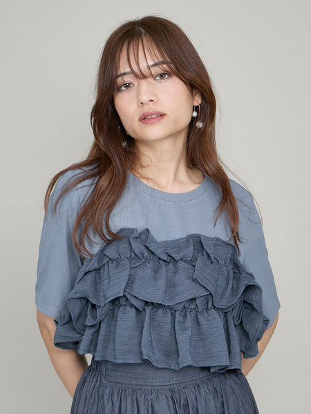 ●POINTバスト部分にフリルデザインがあしらわれたドレスTシャツはフリル部分をショルダーにかけてビスチェレイヤード風に、ショルダーをはずしてベアトップレイヤード風にと着こなしのアレンジが可能になっています。ボディラインに寄り添うシルエットなのでフレアスカートにタックインしたフィット&フレアなシルエットで着こなしていただくスタイルがおすすめです。----------------------------------透け感:淡色のみややあり厚さ: 普通伸縮性:あり裏地: なしポケット: なし--------------------------------------------------------------------------------------------------洗濯方法家庭洗濯:液温は40℃を限度とし、手洗いができる。自然乾燥:日陰の吊り干しがよい。アイロン:底面温度120℃を限度としてアイロン仕上げができる。ドライクリーニング:石油系溶剤による弱いドライクリーニングができる。----------------------------------------------------------------■モデル身長 165cm 着用サイズ M※画像の商品はサンプルとなりますので実際の商品と仕様、加工、サイズが若干異なる場合がございます。※お客様のモニター環境により実際のお色と多少異なる場合がございます。※撮影状況や光の当たり具合により、色合いが異なって見える場合がございます。関連ワード:QUEENS COURT クイーンズコート レディース 新作 フェミニン 大人コーデ 通勤 2025春夏 2025SS 夏 夏服 Tシャツ ポリエステル レーヨン ナイロン クルーネック 半袖