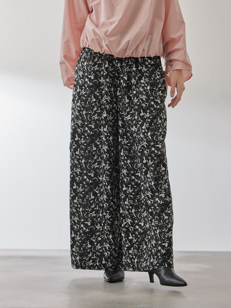 ●POINTミックスフラワー柄(パプール系・ネイビー系)とモノトーンフラワー柄(ホワイト系・ブラック系)の4色展開です。タックインスタイルでもウエストラインが気になりにくいゴムギャザーデザインになっておりイージーな履き心地です。----------------------------------透け感:なし厚さ: やや薄い伸縮性:なし裏地: ポケット: あり--------------------------------------------------------------------------------------------------洗濯方法家庭洗濯:液温は40℃を限度とし、手洗いができる。自然乾燥:日陰の吊り干しがよい。アイロン:底面温度120℃を限度としてアイロン仕上げができる。ドライクリーニング:石油系溶剤による弱いドライクリーニングができる。----------------------------------------------------------------■モデル身長 165cm 着用サイズ M※画像の商品はサンプルとなりますので実際の商品と仕様、加工、サイズが若干異なる場合がございます。※お客様のモニター環境により実際のお色と多少異なる場合がございます。※撮影状況や光の当たり具合により、色合いが異なって見える場合がございます。関連ワード:QUEENS COURT クイーンズコート レディース 新作 フェミニン 大人コーデ 2025秋冬 2025AW 秋冬 秋物 秋服 イージーパンツ ワイドルーズ 10分丈 ポリエステル 花・植物 ゴム