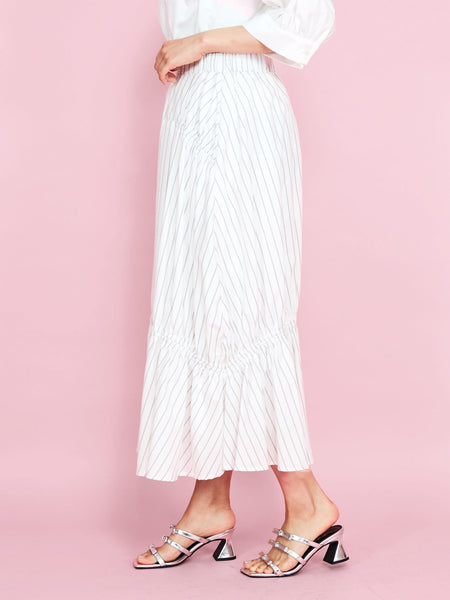 ●POINT高密度に織り上げたハリ感が特徴のシワになりにくいテキスタイルを使用しています。腰位置と膝下部分でギャザーを寄せて、変形コクーンシルエットを描くデザインスカートです。膝下位置で切り替え、裾はフレアラインにすることで動作性もよいデザインです。コクーンシルエットやバルーンヘムなどの甘めテイストとモード感を両立します。同素材でバックジップタックブラウス(2213-53095)があり、セットアップでのご着用が可能です。チャコールグレー、ストライプ柄、ギンガムチェック柄の3色展開です。----------------------------------透け感:淡色のみややあり厚さ: やや薄い伸縮性:なし裏地: ありポケット: なし--------------------------------------------------------------------------------------------------洗濯方法家庭洗濯:液温は30℃を限度とし、洗濯機で非常に弱い洗濯ができる。自然乾燥:日蔭の吊り干しがよい。アイロン:底面温度120℃を限度としてアイロン仕上げができる。ドライクリーニング:石油系溶剤による弱いドライクリーニングができる。----------------------------------------------------------------■モデル身長 165cm 着用サイズ M※画像の商品はサンプルとなりますので実際の商品と仕様、加工、サイズが若干異なる場合がございます。※お客様のモニター環境により実際のお色と多少異なる場合がございます。※撮影状況や光の当たり具合により、色合いが異なって見える場合がございます。関連ワード:QUEENS COURT クイーンズコート レディース 新作 フェミニン 大人コーデ 通勤 2025春夏 2025SS 夏 夏服 コットン ポリエステル 無地 ストライプ ギンガムチェック フレアスカート ギャザースカート コクーンスカート