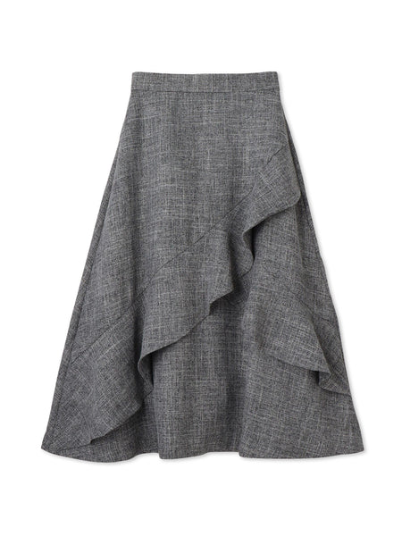 ●POINTツィードのようなクラシカルな趣をもつメランジオックス素材を使用したアシンメトリーフリルスカートです。角度によって変わる表情、上質感のある風合いで、歩くたびに生まれる柔らかな揺らめきがシルエットに動きを与え、女性らしさをさりげなく引き立てます。オンシーンには上品なブラウスを、オフの日にはニットやカットソーを合わせて。装い次第で、知的にも華やかにも表情を変える一枚です。日常に寄り添いながらも、ふとした瞬間に特別感を感じさせてくれるスカートです。バックウエストゴムギャザー仕様です。----------------------------------透け感:なし厚さ: やや厚い伸縮性:なし裏地: ポケット: --------------------------------------------------------------------------------------------------洗濯方法家庭洗濯:液温は40℃を限度とし、手洗いができる。自然乾燥:日陰の吊り干しがよい。アイロン:底面温度120℃を限度としてアイロン仕上げができる。ドライクリーニング:石油系溶剤による弱いドライクリーニングができる。----------------------------------------------------------------■モデル身長 165cm 着用サイズ M※画像の商品はサンプルとなりますので実際の商品と仕様、加工、サイズが若干異なる場合がございます。※お客様のモニター環境により実際のお色と多少異なる場合がございます。※撮影状況や光の当たり具合により、色合いが異なって見える場合がございます。関連ワード:QUEENS COURT クイーンズコート レディース 新作 フェミニン 大人コーデ 2025秋冬 2025AW 秋冬 秋物 秋服 ポリエステル レーヨン ゴム