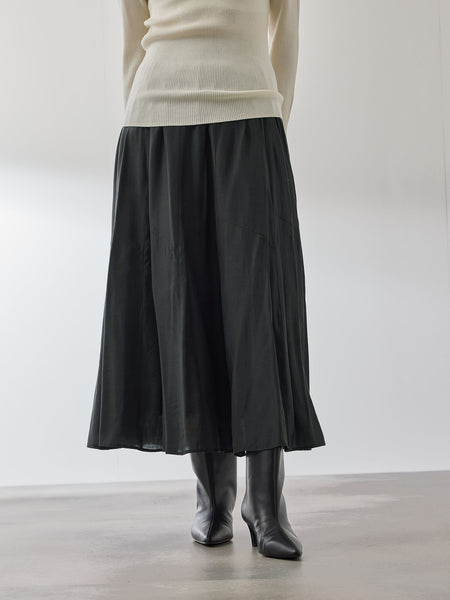 ●POINTシルキーな艶っぽさを感じさせるテキスタイルを使用した、動きの中に生まれる美しいシルエットのスカートです。タックインのスタイルでもコーディネートのポイントになるようなウエストタックプリーツデザインで、膝上部分を斜めに切り替えて裾まわりに分量感をもたらします。ウエスト下にはギャザーを寄せて、光沢感のあるテキスタイルとの陰影のコントラストで腰まわりをすっきりとした印象に。繊細な印象のテキスタイルなので、ニット素材のトップスなどとあわせて異なる質感をあわせていただくスタイルがおすすめです。----------------------------------透け感:ややあり厚さ: やや薄い伸縮性:なし裏地: ありポケット: なし--------------------------------------------------------------------------------------------------洗濯方法家庭洗濯:液温は40℃を限度とし、手洗いができる。自然乾燥:日陰の吊り干しがよい。アイロン:底面温度160℃を限度としてアイロン仕上げができる。ドライクリーニング:石油系溶剤による弱いドライクリーニングができる。----------------------------------------------------------------■モデル身長 165cm 着用サイズ M※画像の商品はサンプルとなりますので実際の商品と仕様、加工、サイズが若干異なる場合がございます。※お客様のモニター環境により実際のお色と多少異なる場合がございます。※撮影状況や光の当たり具合により、色合いが異なって見える場合がございます。関連ワード:QUEENS COURT クイーンズコート レディース 新作 フェミニン 大人コーデ 2025秋冬 2025AW 秋冬 秋物 秋服 コットン ポリエステル レーヨン プリーツスカート
