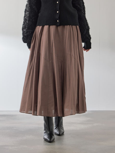 ●POINTシルキーな艶っぽさを感じさせるテキスタイルを使用した、動きの中に生まれる美しいシルエットのスカートです。タックインのスタイルでもコーディネートのポイントになるようなウエストタックプリーツデザインで、膝上部分を斜めに切り替えて裾まわりに分量感をもたらします。ウエスト下にはギャザーを寄せて、光沢感のあるテキスタイルとの陰影のコントラストで腰まわりをすっきりとした印象に。繊細な印象のテキスタイルなので、ニット素材のトップスなどとあわせて異なる質感をあわせていただくスタイルがおすすめです。----------------------------------透け感:ややあり厚さ: やや薄い伸縮性:なし裏地: ありポケット: なし--------------------------------------------------------------------------------------------------洗濯方法家庭洗濯:液温は40℃を限度とし、手洗いができる。自然乾燥:日陰の吊り干しがよい。アイロン:底面温度160℃を限度としてアイロン仕上げができる。ドライクリーニング:石油系溶剤による弱いドライクリーニングができる。----------------------------------------------------------------■モデル身長 165cm 着用サイズ M※画像の商品はサンプルとなりますので実際の商品と仕様、加工、サイズが若干異なる場合がございます。※お客様のモニター環境により実際のお色と多少異なる場合がございます。※撮影状況や光の当たり具合により、色合いが異なって見える場合がございます。関連ワード:QUEENS COURT クイーンズコート レディース 新作 フェミニン 大人コーデ 2025秋冬 2025AW 秋冬 秋物 秋服 コットン ポリエステル レーヨン プリーツスカート
