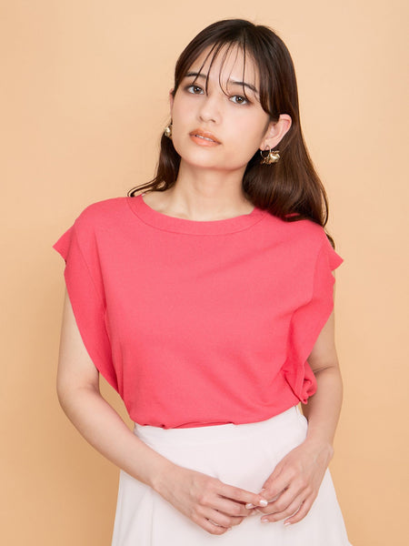 身頃はフラットな編地、サイドと裾はリブ編みで引き締めた印象に。