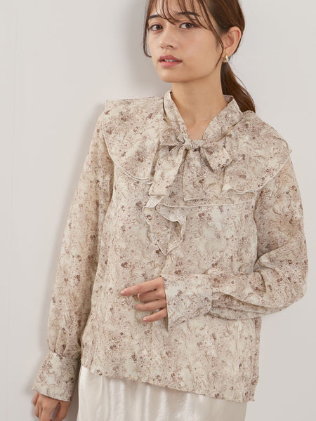 ●POINTシフォンジャカードの軽やかな素材に描かれた、絵画のようなフラワーメインのボタニカル柄が上品でクラシカルな印象が魅力のブラウスです。繊細な透け感と立体的なジャカードの質感と、ボウタイデザインが華やかさを演出します。首元にフェミニンなアクセントを加え、リボンの結び方次第で印象を変えられるのもポイントです。季節の移行期の装いに自然の息吹とアートなエッセンスを添える一枚です。----------------------------------透け感:ややあり厚さ: やや薄い伸縮性:なし裏地: なしポケット: なし--------------------------------------------------------------------------------------------------洗濯方法家庭洗濯:液温は40℃を限度とし、手洗いができる。自然乾燥:日陰の吊り干しがよい。アイロン:底面温度120℃を限度としてアイロン仕上げができる。ドライクリーニング:石油系溶剤による弱いドライクリーニングができる。----------------------------------------------------------------■モデル身長 165cm 着用サイズ M※画像の商品はサンプルとなりますので実際の商品と仕様、加工、サイズが若干異なる場合がございます。※お客様のモニター環境により実際のお色と多少異なる場合がございます。※撮影状況や光の当たり具合により、色合いが異なって見える場合がございます。関連ワード:QUEENS COURT クイーンズコート レディース 新作 フェミニン 大人コーデ 2025秋冬 2025AW 秋冬 秋物 秋服 ブラウス ポリエステル 花・植物 長袖 ボウタイ
