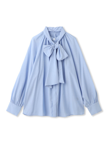 おおぶりな甘さを付与するボウタイブラウスは、ハリ感のあるテキスタイルだからこそ、1枚でも、ジャケットやベストレイヤードでも存在感を発揮します。