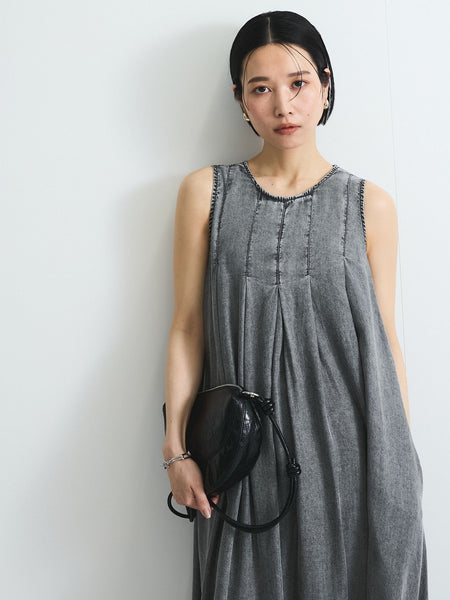 ―濃色ステッチがアクセントに!落ち感デニムですっきりIラインシルエットワンピース●POINTヴィンテージ感漂う加工を施した、滑らかなテクスチャーのテキスタイルです。デコルテ部分に広幅でステッチワークを施し、バストトップから裾にかけて自然なプリーツ感が出るデザインになっています。落ち感のあるテキスタイルなので、シルエットが広がりすぎることなくキレイなIラインに仕上がります。同素材の展開でバイオシルクパウダージョガーパンツ(2310-51035)がございます。●FABRICシルクのような自然な光沢感があり、柔らかくしなやかな再生繊維(セルロース)を使用しています。----------------------------------透け感:なし厚さ: 普通伸縮性:なし裏地: なしポケット: あり--------------------------------------------------------------------------------------------------洗濯方法家庭洗濯:液温は30℃を限度とし、洗濯機で非常に弱い洗濯ができる。自然乾燥:日蔭の吊り干しがよい。アイロン:底面温度120℃を限度としてアイロン仕上げができる。ドライクリーニング:石油系溶剤による弱いドライクリーニングができる。----------------------------------------------------------------■モデル身長 165cm 着用サイズ M※画像の商品はサンプルとなりますので実際の商品と仕様、加工、サイズが若干異なる場合がございます。※お客様のモニター環境により実際のお色と多少異なる場合がございます。※撮影状況や光の当たり具合により、色合いが異なって見える場合がございます。関連ワード:VICKY ビッキー レディース 2025春夏 2025SS 春夏 春物 春服 新作 大人カジュアル 大人コーデ Iライン ワンピース