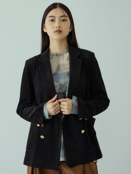 ●POINTさりげなくシアー感のあるベロア素材を使用したダブルボタンのテーラードジャケットです。程よくエレガントできちんと感があるのに、カーディガン感覚でご着用いただけるイージージャケットです。程よく緩めのクリーンなシルエットで抜け感を演出します。マーブルボタンで少しだけドレスダウンな印象に。残暑の残る季節移行期に、持ち運びにも便利で重宝する一枚です。また、肩掛けのスタイルでも、軽く心地よくお召しいただけます。----------------------------------透け感:ややあり厚さ: 普通伸縮性:あり裏地: なしポケット: あり--------------------------------------------------------------------------------------------------洗濯方法家庭洗濯:家庭での洗濯禁止。アイロン:底面温度120℃を限度としてアイロン仕上げができる。ドライクリーニング:石油系溶剤による弱いドライクリーニングができる。----------------------------------------------------------------■モデル身長 165cm 着用サイズ M※画像の商品はサンプルとなりますので実際の商品と仕様、加工、サイズが若干異なる場合がございます。※お客様のモニター環境により実際のお色と多少異なる場合がございます。※撮影状況や光の当たり具合により、色合いが異なって見える場合がございます。関連ワード:VICKY ビッキー レディース 新作 大人カジュアル 大人コーデ 2025秋冬 2025AW 秋冬 秋物 秋服 合成繊維/ポリエステル ポリウレタン 合成皮革