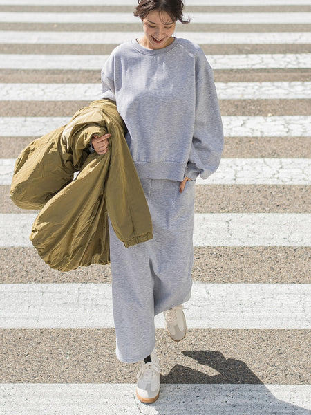 着た瞬間ポカポカ温まる!?裏起毛なのに大きく見えない大人スウェット●POINT大人のカジュアルスタイルに欠かせないスウェットプルオーバーです。ふんわりとした肌触りのよい価値観のある生地を採用しています。程よいクロップト丈が今の気分にぴったり。パンツ、スカートにも合わせやすい丈にこだわりました。●FABRIC暖かな裏起毛素材。少しジャージーな表面感が今年らしい印象です。●COORDINATEシアーインナーやロンTとレイヤードしても◎。キレイめなスタイリングの外しアイテムとしてこなれ感の出るアイテムです。レーススカートやタフタシャーリングスカートなどレディライクなアイテムとも相性抜群。同素材のパンツ(2310-38018)やスカート(2311-37007)とセットアップでの着用も◎----------------------------------透け感:なし厚さ: やや厚い伸縮性:ややあり裏地: なしポケット: なし--------------------------------------------------------------------洗濯方法家庭洗濯:液温は30℃を限度とし、洗濯機で非常に弱い洗濯ができる。自然乾燥:日蔭の吊り干しがよい。アイロン:底面温度110℃を限度としてアイロン仕上げができる。ドライクリーニング:石油系溶剤による弱いドライクリーニングができる。----------------------------------■モデル身長 162cm 着用サイズ M※画像の商品はサンプルとなりますので実際の商品と仕様、加工、サイズが若干異なる場合がございます。※お客様のモニター環境により実際のお色と多少異なる場合がございます。※撮影状況や光の当たり具合により、色合いが異なって見える場合がございます。関連ワード:VICKY ビッキー レディース 2024秋冬 2024AW 秋冬 冬物 新作 大人カジュアル 大人コーデ カットソー コットン ポリエステル クルーネック 無地 長袖 スウェット レイヤード 裏起毛