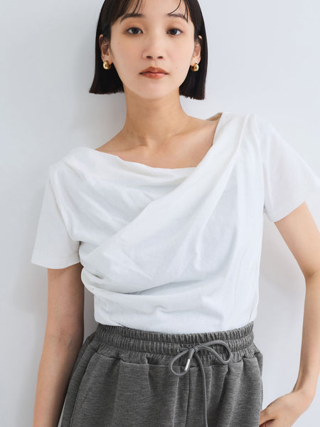 ●POINT衿元のドレープデザインがニュアンスのあるルックに仕上げるカットソートップスです。ドレープデザインのおかげで、ほんのり重厚感をプラスするので夏のTシャツコーディネートと一線を画すものに仕上がります。形はボディに寄り添うシルエットなので、タックインで着合わせていただくと、よりデザインが引き立ちます。----------------------------------透け感:淡色のみややあり厚さ: 普通伸縮性:あり裏地: なしポケット: なし--------------------------------------------------------------------------------------------------洗濯方法家庭洗濯:液温は40℃を限度とし、手洗いができる。自然乾燥:日蔭の吊り干しがよい。アイロン:底面温度120℃を限度としてアイロン仕上げができる。ドライクリーニング:石油系溶剤による弱いドライクリーニングができる。----------------------------------------------------------------■モデル身長 165cm 着用サイズ M※画像の商品はサンプルとなりますので実際の商品と仕様、加工、サイズが若干異なる場合がございます。※お客様のモニター環境により実際のお色と多少異なる場合がございます。※撮影状況や光の当たり具合により、色合いが異なって見える場合がございます。関連ワード:VICKY ビッキー レディース 新作 大人カジュアル 大人コーデ 2025秋冬 2025SS 秋冬 秋物 秋服 カットソー コットン 無地 半袖