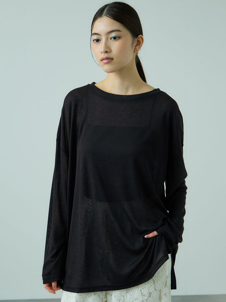 ほんのり透け感のあるセミシアータイプのファブリックを使用したオーバーサイズのカットソーです。