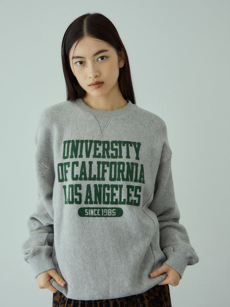 アウターを着用するコーディネートでもスタイリングのポイントになるように、前身頃はオーセンティックなカレッジロゴをフロッキープリントし、袖口にはワッペン刺繍を施しています。