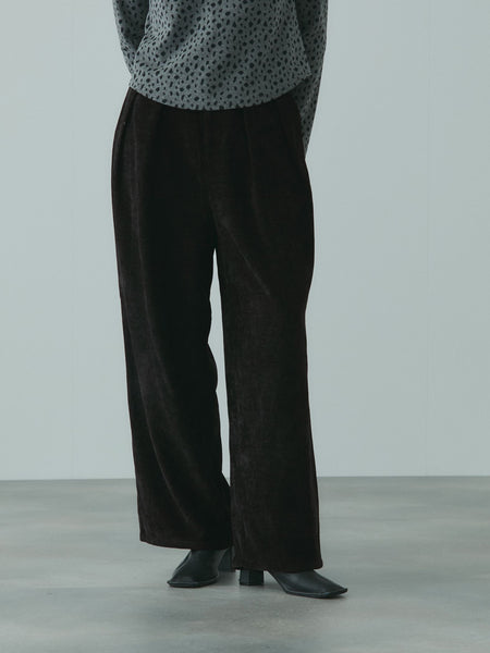 ベルベットのような微光沢感のあるエレガントさとコーデュロイのようなカジュアル感が共存する微起毛感のあるサージ素材を使用しています。