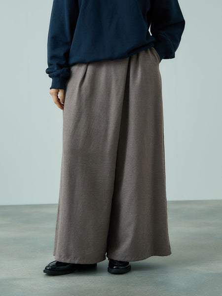 ●POINT繊細な起毛感のあるフィブリルサテンのテキスタイルを使用しています。秋冬シーズンのみならず、ロングタームでご着用いただける息の長いアイテムです。サイドファスナーデザインで、腰まわりはアシンメトリーにオーバーラップする形なので、丸みを感じやすいお腹回りをカバーし、すっきり見えが叶うデザインです。ボクシーフォルムのニットなどをあわせてパンツデザインが見えてくるコーディネートがおすすめです。----------------------------------透け感:なし厚さ: 普通伸縮性:なし裏地: ありポケット: あり--------------------------------------------------------------------------------------------------洗濯方法家庭洗濯:液温は30℃を限度とし、洗濯機で非常に弱い洗濯ができる。自然乾燥:日蔭の吊り干しがよい。アイロン:底面温度160℃を限度としてアイロン仕上げができる。ドライクリーニング:石油系溶剤による弱いドライクリーニングができる。----------------------------------------------------------------■モデル身長 165cm 着用サイズ M※画像の商品はサンプルとなりますので実際の商品と仕様、加工、サイズが若干異なる場合がございます。※お客様のモニター環境により実際のお色と多少異なる場合がございます。※撮影状況や光の当たり具合により、色合いが異なって見える場合がございます。関連ワード:VICKY ビッキー レディース 新作 大人カジュアル 大人コーデ 2025秋冬 2025AW 秋冬 秋物 秋服 ワイドルーズ ポリエステル ナイロン サテン 無地